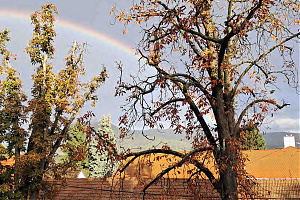 Elhatároztuk, hogy Zebegény felé jövünk le a hegyről. Megnéztük útközben a Nemzeti emlékhelyet és Kós Károly templomot. Vonattal Nagymarosra érkezve egy gyors zápor után szivárvány alatt érkeztünk a rév állomásra. Ez lepecsételte a megszentelt napotunkat.