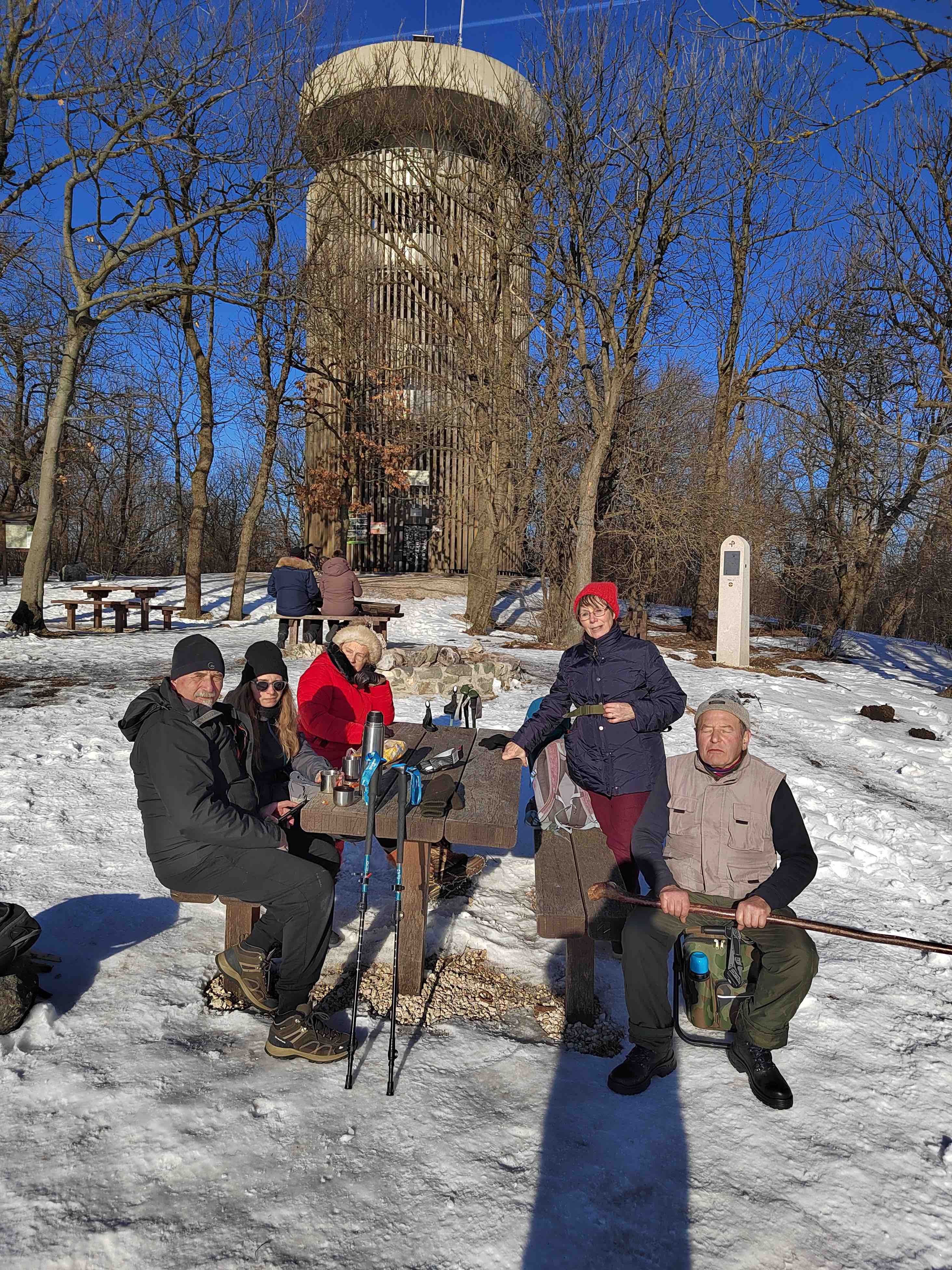 Ebédünket az Özséb-kilátó lábánál fogyasztottuk el. Az egykori geodéziai torony köré utólag épített faszerkezet tetőjéről nem csupán a panorámát, hanem a paplanernyősök mutatványait is láthattuk.