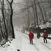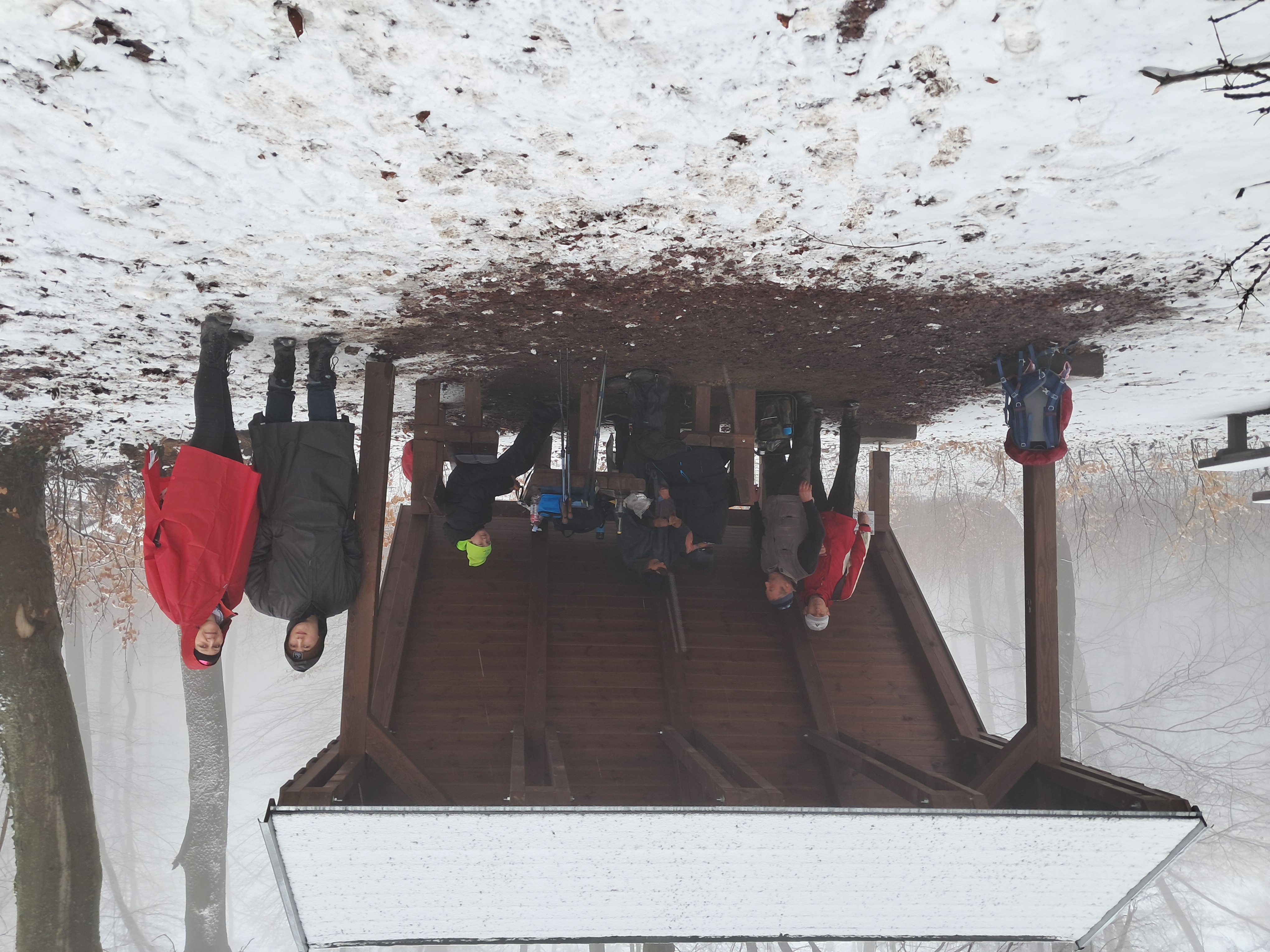 A széles aszfalt úton való haladás a letaposott, jeges felszín ellenére nem okozott gondot. Sokáig a Hoffman kunyhó felé haladtunk kellemes napsütésben, míg valahol a Mexikó nevezetű helynél vágtunk le jobbra abban a reményben hogy a szokott módon egy kis hídon keresztül jutunk át a Kétbükkfa-nyereg felé vezető túrista útra. Utólag már tudjuk, hogy túl korán tértünk le a széles útról - a kérges, szűz hóban való haladás valamennyiinket nehéz próba elé állított, de szerencsére megtaláltuk a már ismert ösvényt.